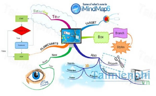 iMindMap có những tính năng chính như: sử dụng những hình ảnh cần thiết, tạo hình ảnh, nội dung tổng quát, sử dụng các màu sắc để làm nổi bật vấn đề, vẽ sơ đồ nhanh chóng và dễ dàng.